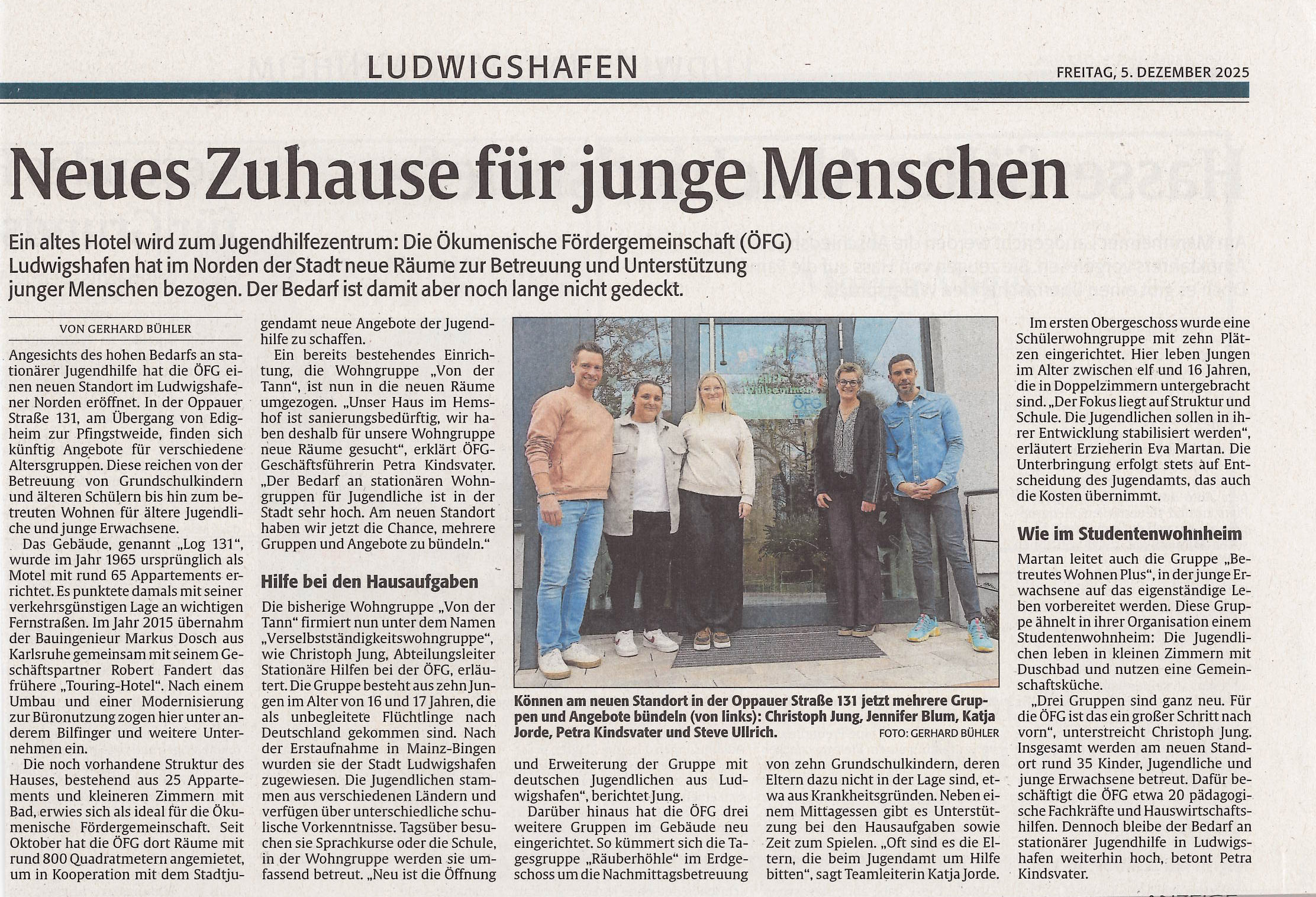 Ein altes Hotel wird zum Jugendhilfezentrum: Die Ökumenische Fördergemeinschaft (ÖFG) Ludwigshafen hat im Norden der Stadt neue Räume zur Betreuung und Unterstützung junger Menschen bezogen. Der Bedarf ist damit aber noch lange nicht gedeckt….